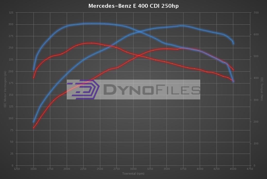 Dyno Files are leading in the development of Mercedes-Benz E 400 CDI 260hp tuning files. The development of each Mercedes-Benz E 400 CDI 260hp tuning file is the result of perfection and dedication by Dyno Files programmers. The organization only uses the latest technologies and has many years experience in ECU remapping software. Many (chiptuning) organizations around the globe download their tuning files for Mercedes-Benz E 400 CDI 260hp at Dyno Files for the best possible result. All Mercedes-Benz E 400 CDI 260hp tuning files deliver the best possible performance and results within the safety margins.